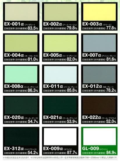 ※日射反射率は、遮熱塗料のJIS化に伴い、近赤外線領域波長範囲(780〜2500nm)で計測した数値です。